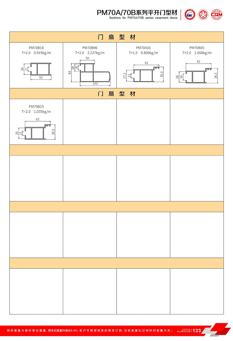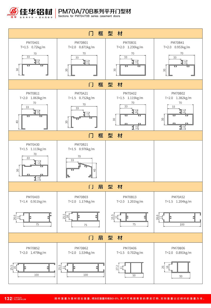 鋁型材規格型號:PM70A/70B